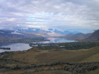 The lake ended just before Creston, a town of 5,000 in an agricultural region with dairy farms and orchards. The road climbed some along the eastern side on the way into town. I spotted a Scotties Campground sign where the cycling group was staying so finding the campground was easy.