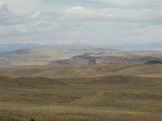 expanses of yellow grassland and sagebrush and some rolling hills in the