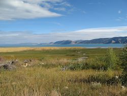 I stopped at a food mart in Laketown and bought some milk for a later breakfast. While I was there 2 cyclists rode by and turned to go up the east coast of the lake. It was probably 45-50 miles to ride around the lake and I guessed that was what they were doing. I would imagine riding around the lake was a popular bike route.